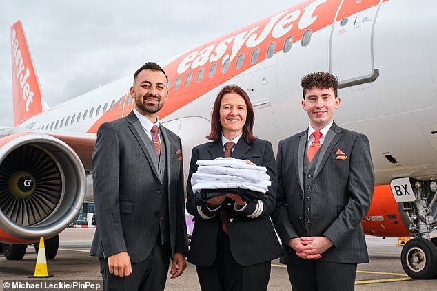 Direktur layanan kabin EasyJet, Michael Brown, mengatakan, ‘Kami bangga meluncurkan program daur ulang seragam kami – tujuan kami pada tahap pertama ini adalah untuk mendukung orang tua yang kesulitan secara finansial serta mengurangi limbah tekstil kami.