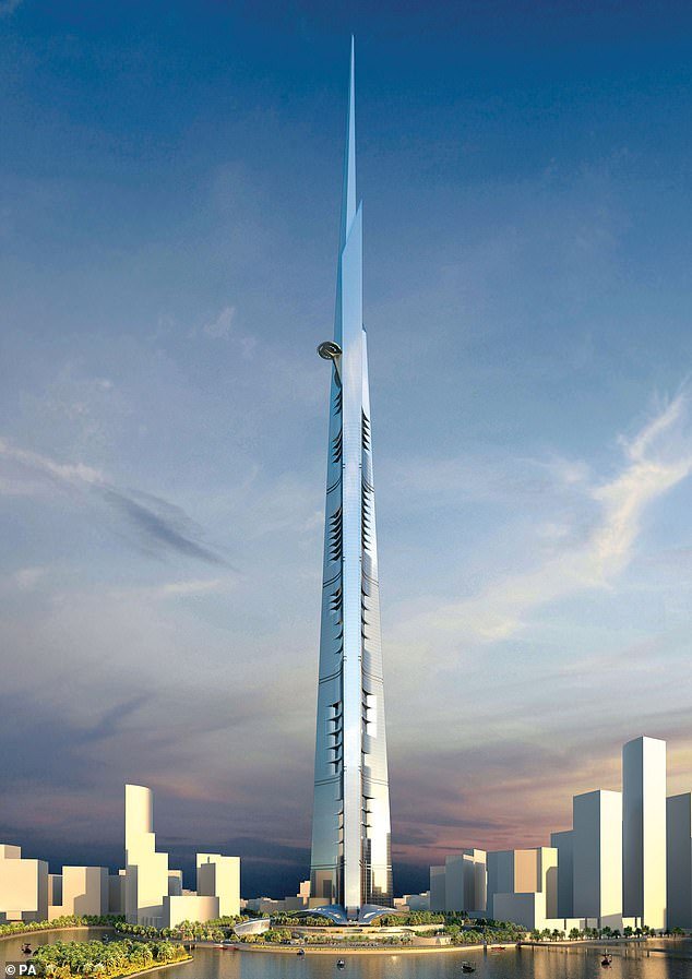 Arab Saudi saat ini sedang mengembangkan Menara Jeddah, yang tingginya 3.281 kaki (1.000 meter) (gambar: kesan seniman) dirancang untuk menjadi bangunan pertama yang tingginya melebihi satu kilometer.
