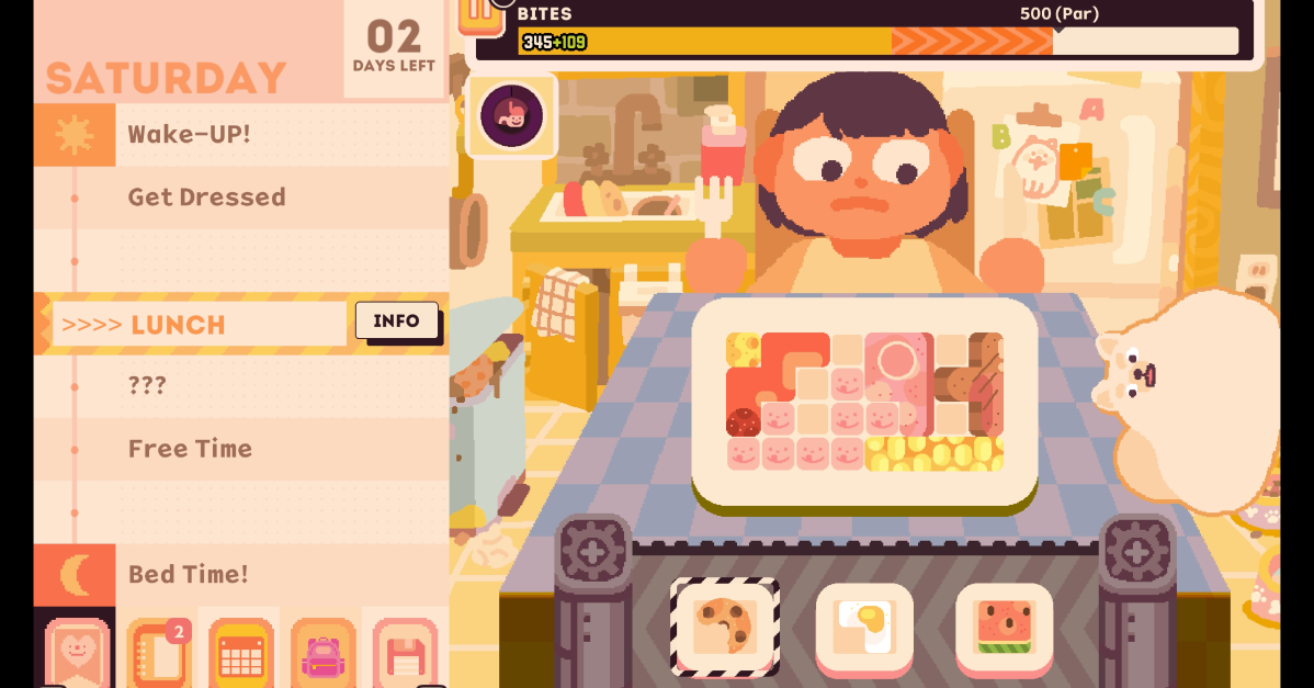 Makanan masuk Konsumen – Tomat, kubis, dan pasta dibuat seperti Tetris Blok: “Morsi” ditugaskan, dukungan untuk kalori. Jenny (karakter, bukan pengembang, kepada siapa kita akan merujuk pada penggunaan nama keluarganya, hsia) Ritual makan siang mengorganisir blok -blok ini di atas piring, dengan hati -hati memilih potongan -potongan dan mengatur keduanya untuk membuatnya tetap penuh tetapi tetap di bawah batas gigitan yang ditimpakan sendiri. Ini adalah jenis matematika yang akrab dengan video game, tetapi telah terbalik dari pengaruh diet yang terkontrol dan tidak teratur. Ini Tidak ada krokur mulut yang cerah, Nyonya untuk menghadapi terbuka dari Final Fantasy XVHidangan seindah yang kuat.