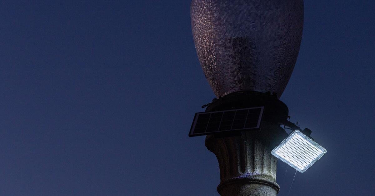 Lampu bertenaga surya yang dihubungkan dengan lampu jalan yang tidak berfungsi