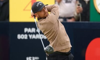 17 Juli 2025. Portrush, IRL. Xander Schauffele melakukan pukulan di hole keempat pada putaran pertama turnamen golf British Open Championship ke-153 di Royal Portrush. Kredit yang...