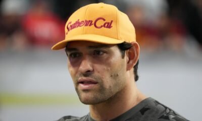 2 Desember 2022; Las Vegas, Nevada, AS; Mantan quarterback untuk Trojans California Selatan, Mark Sanchez mengambil bagian dalam pertandingan kejuaraan Pac-12 di Stadion Allegiant. Kredit yang...