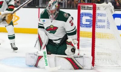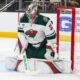 29 April 2025. Las Vegas, Nevada, AS. Minnesota Wild Gatetender Philip Gustafson (32) akan melakukan penyelamatan melawan Vegas Golden Knight selama periode kedua putaran kelima putaran...