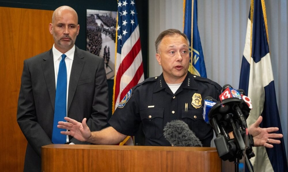 Kepala IMPD Chris Bailey dan Jaksa Wilayah Marion Ryan Mears akan membahas penyelidikan tusukan pusat kota akhir pekan pada konferensi pers di dalam sebuah gedung kota-kota...